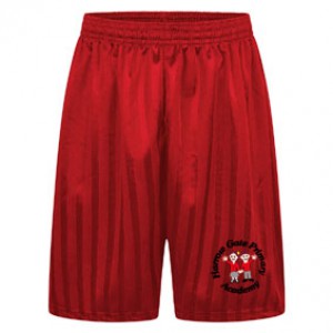 Embroidered, Harrow Gate Primary, Red, Shadow Stripe, Draw String Shorts (from Zeco).