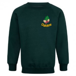 Embroidered, Oakdene Primary, Bottle Green, Crew Neck Sweatshirt with Raglan Sleeves (from Zeco).