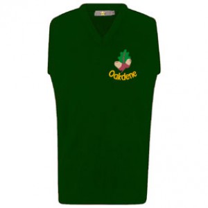 magicfit, Embroidered, Oakdene Primary, Bottle Green, Cotton/Acrylic, Mid Weight, V-Neck Knitted Tank Top (from Gregory Pollard).