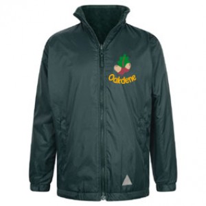 Embroidered, Oakdene Primary, Bottle Green, Reversible Fleece Zipper Jacket with Stow-Away Hood (from Zeco).