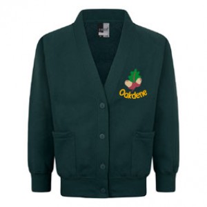 Embroidered, Oakdene Primary, Bottle Green, Girls Sweat Cardigan with Two Pockets and Raglan Sleeves (from Zeco).