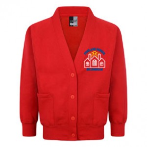 Embroidered, Pentland Primary, Red, Girls Sweat Cardigan with Two Pockets and Raglan Sleeves (from Zeco).