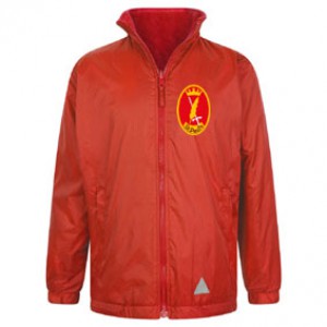 Embroidered, St Pauls, Red, Reversible Fleece Zipper Jacket with Stow-Away Hood (from Zeco).