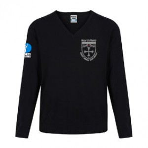 Embroidered, Northfield Academy, Boys, Black, V-Neck, Knitted, Light Weight, Cotton Pullover (from Rowlinson Knitwear).