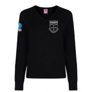 Embroidered, Northfield Academy, Girls, Black, V-Neck, Knitted, Light Weight, Cotton Pullover (from Rowlinson Knitwear).
