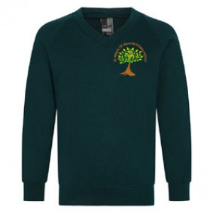 Embroidered, Saint Aidans, Bottle Green, V-Neck Sweatshirt with Raglan Sleeves (from Zeco).