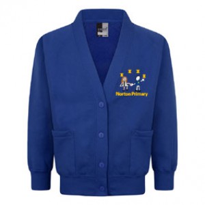 Embroidered, Norton Primary Academy, Royal Blue, Girls Sweat Cardigan with Two Pockets and Raglan Sleeves (from Zeco).
