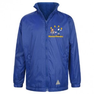 Embroidered, Norton Primary Academy, Royal Blue, Reversible Fleece Zipper Jacket with Stow-Away Hood (from Zeco).