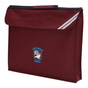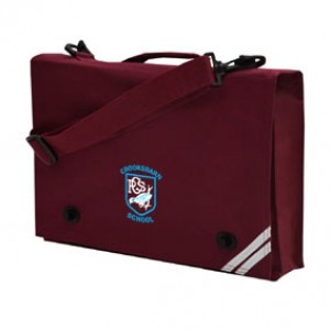 Embroidered, Crooksbarn Primary, Maroon, Expandable Book Bag (from William Turner).