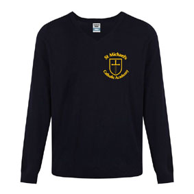 Embroidered, St Michaels RC, Boys, Navy Blue, V-Neck, Knitted, Light Weight, Cotton Pullover (from Rowlinson Knitwear).