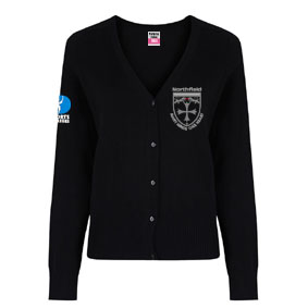Embroidered, Northfield Academy, Girls, Black, Knitted, Light Weight, Cotton Cardigan (from Rowlinson Knitwear).