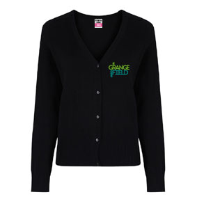 Embroidered, Grangefield Academy, Girls, Black, Knitted, Light Weight, Cotton Cardigan (from Rowlinson Knitwear).